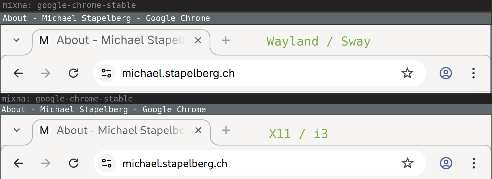 I also noticed a very annoying glitch when output scaling is enabled: the contents of (some!) windows would “jump around” as I was switching between windows (in a tabbed or stacked container) or between workspaces.
